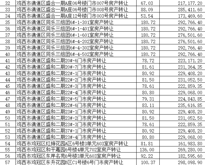 雞西市熱力有限公司57處房產(chǎn)分別轉讓